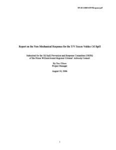 This 2006 Council report outlines the non-mechanical response to the T/V Exxon Valdez grounding and subsequent oil spill. It includes a description of the contingency plan structure, a description of the Oil Dispersants Guidelines for Alaska, the decision-making processes between the federal and state agencies, and a detailed description of all the dispersant applications performed during the spill.